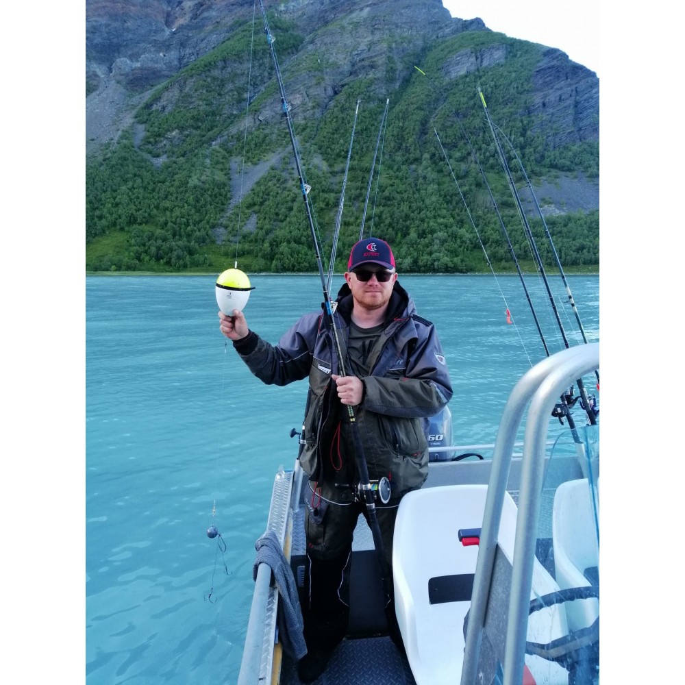 206-08 – Duży, 500 gr spławik do połowu na martwą rybę w Norwegii. Wyposażony jest w mocny klips-stoper, pozwalający blokować przynętę na dowolnej głębokości. Polecany szczególnie do połowów morskich drapieżników, takich jak halibuty, molwy czy dorsze. Spławik jest centralnie przelotowy. Wystarczy założyć go na zestaw, opuścić naszą przynętę na odpowiednią głębokość, a klipsem ustalić tylko głębokość przynęty. Tak swobodnie dryfujący zestaw w toni, na pewno skusi każdego dużego drapieżnika. Po braniu i skutecznym zacięciu, wystarczy tylko wypiąć klips z żyłki i rozpocząć swobodny hol, gdyż spławik niczym już nie blokowany będzie się zsuwał w stronę w stronę holowanej ryby. Do tego spławika można zastosować ciężarek w przedziale 400 - 600g, co w zupełności umożliwia skuteczne obławianie kilkudziesięciometrowej wody. Patent ten był wielokrotnie przetestowany na norweskich wyprawach Team EXPERT. Na śródlądziu zastosowanie tego spławika znajdą miłośnicy stacjonarnego połowu suma - do klasycznej zrywki z użyciem boi, dostępnej w ofercie EXPERT
