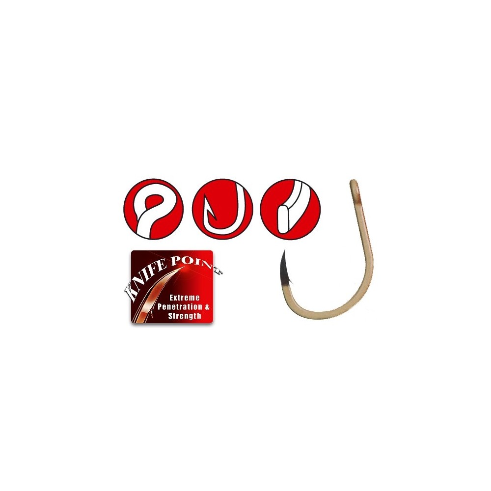 Wzmocniona wersja karpiowego haka Specialist, posiadająca dodatkowo szerszy łuk kolankowy.