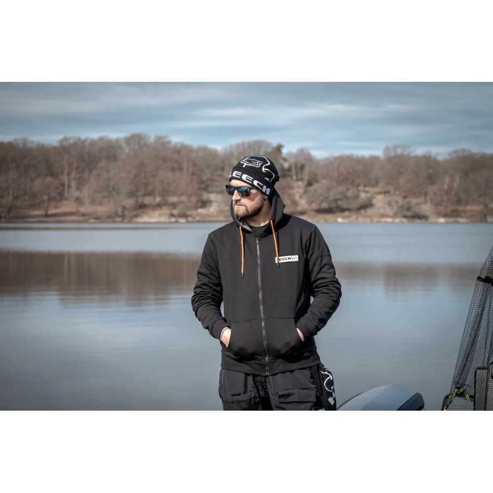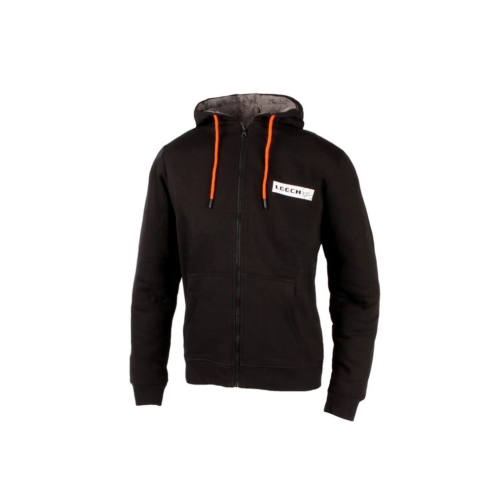 Haftowane logo Leech na kapturze i nadruk Leech na piersi.