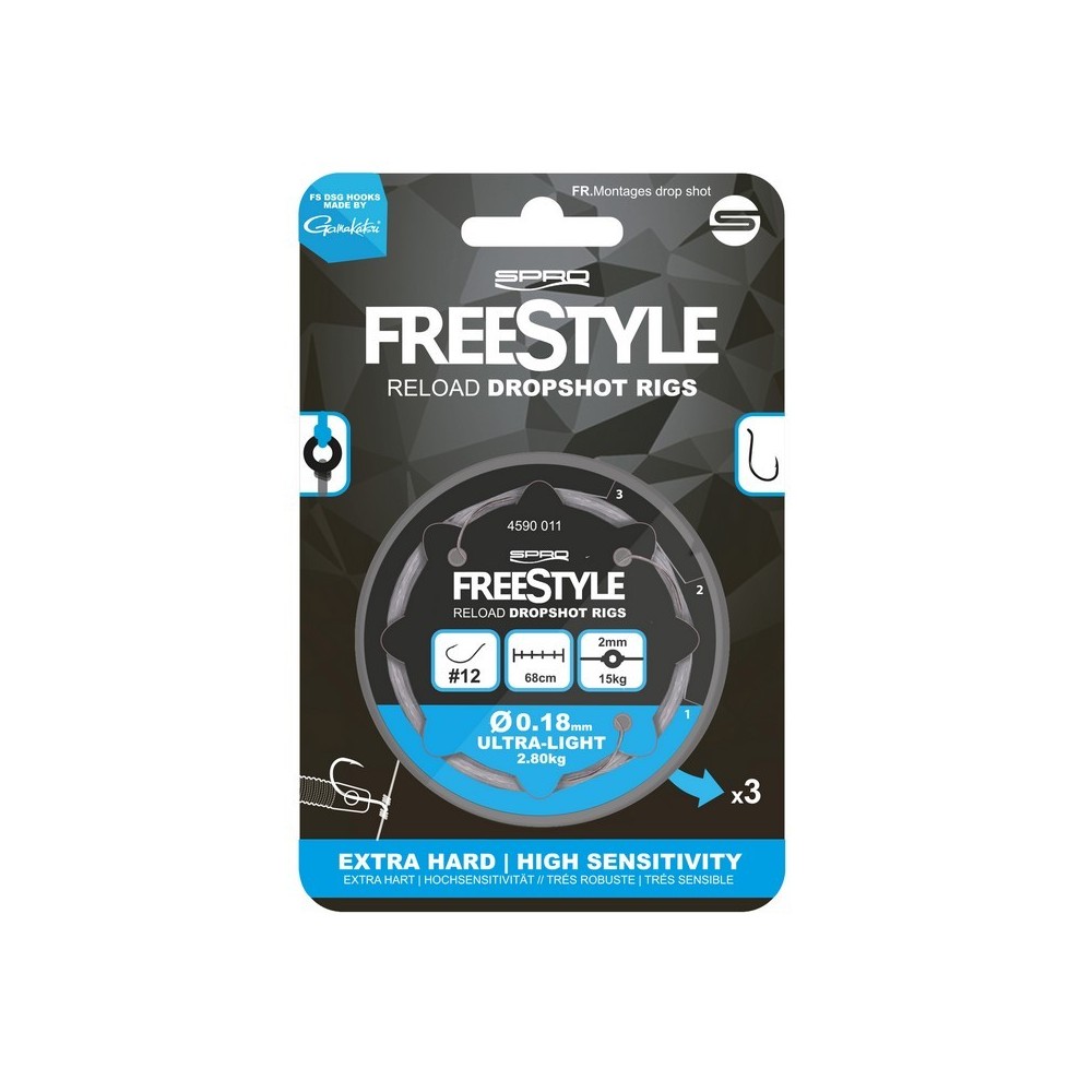 Przypon Dropshotowy FS, posiada w komplecie niezwykle ostry hak Gamakatsu oraz mocny fluorocarbon FS. Z jednej strony zakończony jest mikro kółeczkiem łącznikowym do uwiązania z główną plecionką a z drugiej strony wystarczy tylko zamontować ciężarek dropshotowy FS Pear Lead i zestaw jest gotowy do łowienia. Na szpulce znajdują się 3 przypony o długości 68cm.