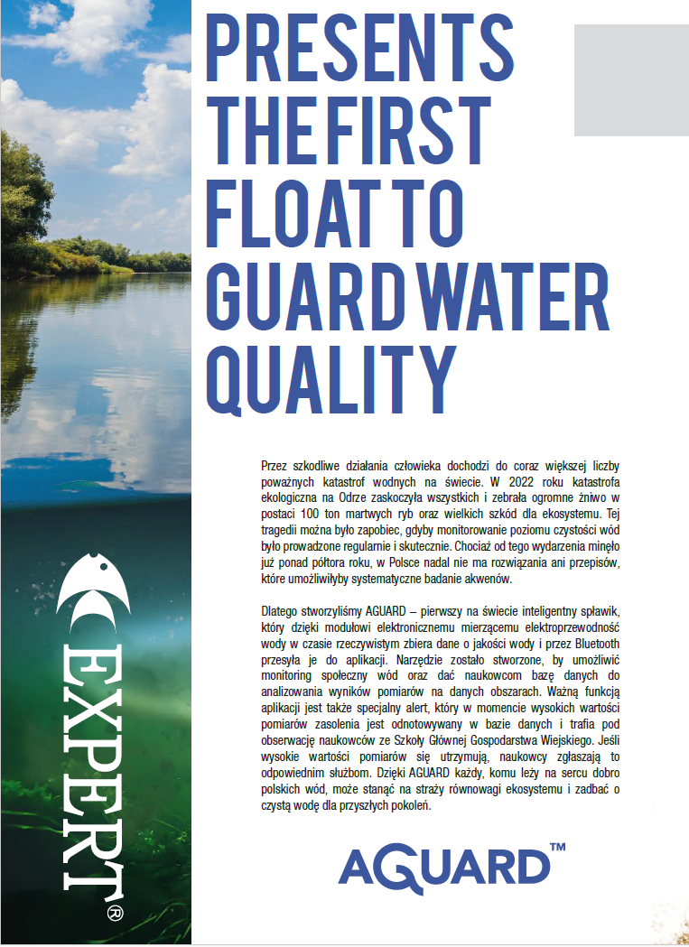 Wierzymy, że dzięki Państwu spławik będzie miał szansę być używany jak najczęściej, co pozwoli nam w większym stopniu monitorować stan zasolenia wód. Dlatego gorąco zachęcamy do dołączenia do gronaużytkowników spławika AGUARD, ponieważ każdy z nas może mieć wpływ na zmianę losu polskich rzek i jezior.